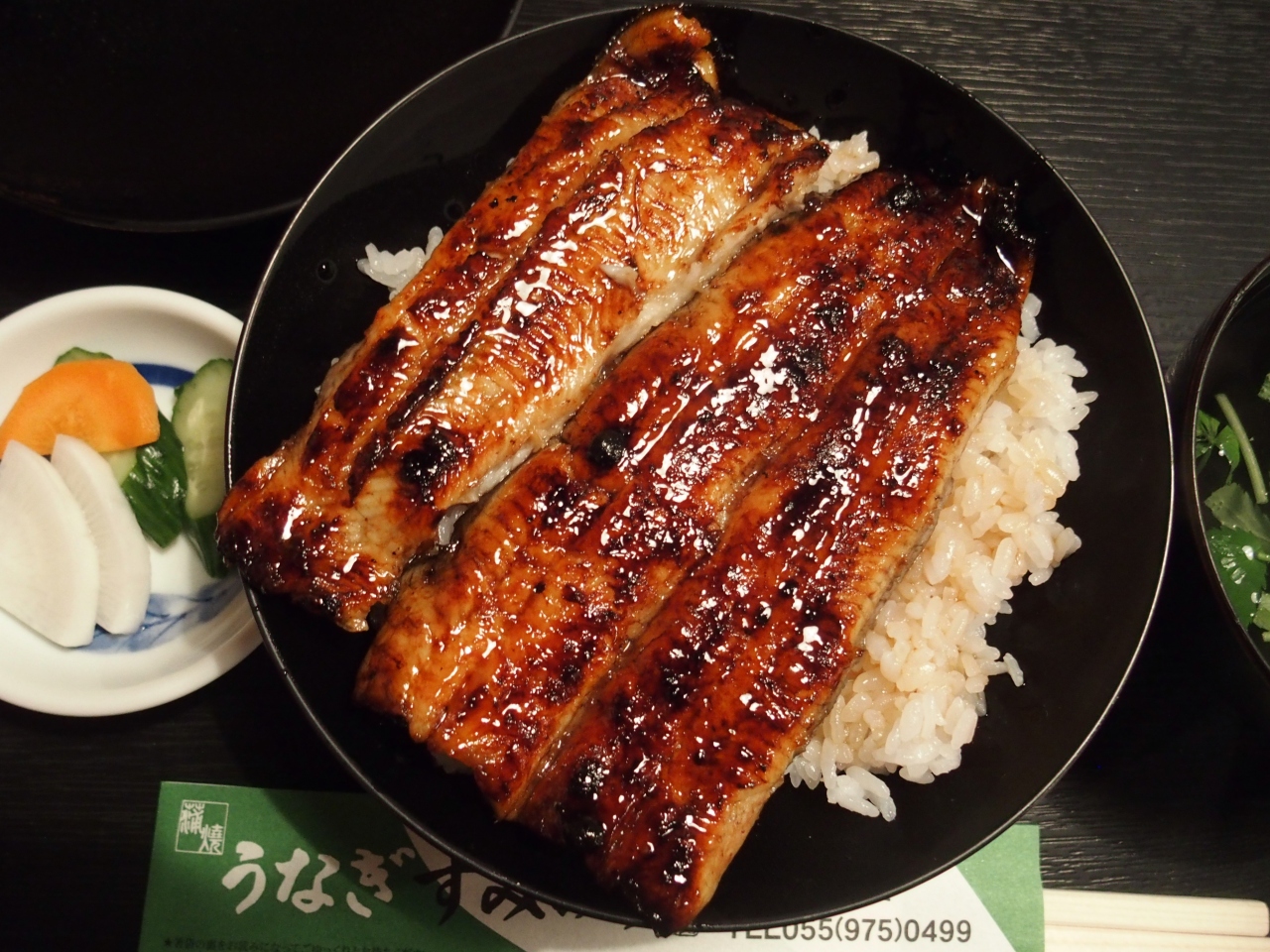 三島といえばうなぎ。市内には、老舗のうなぎやさんが、軒を連ねます。すみの坊さんは、市内に数店舗ある、チェーン店。駐車場があるのですが、裏手で分かりにくく、見過ごしてしまい、他の有料駐車場に止めました。大人気店です。3連休でしたので、5時半ごろでしたが、もうすでに行列が。それでも20分ほどで、席に案内されました。うな丼は、ふわふわで、とても柔らかく、脂もよくのっていて、最高に美味。口の中でとろけるようです。きもすいと、つけものがつきます。また来たいお店です。