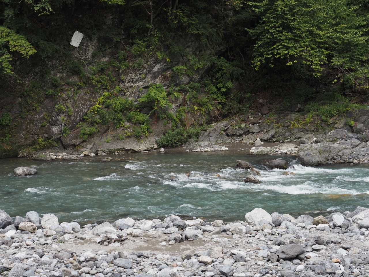 河原は広く、テントを張る場所は平らになっていますが、場所によって地盤が固く、ペグがささりにくいです。