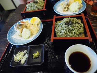 ヨモギ入りの緑っぽいお蕎麦です。健康に良さそう。