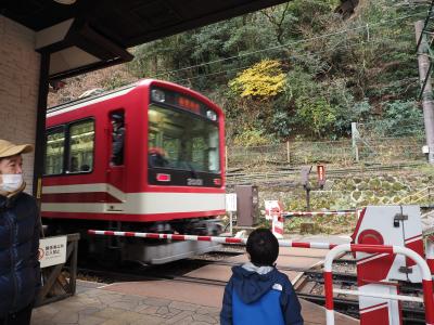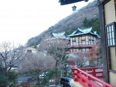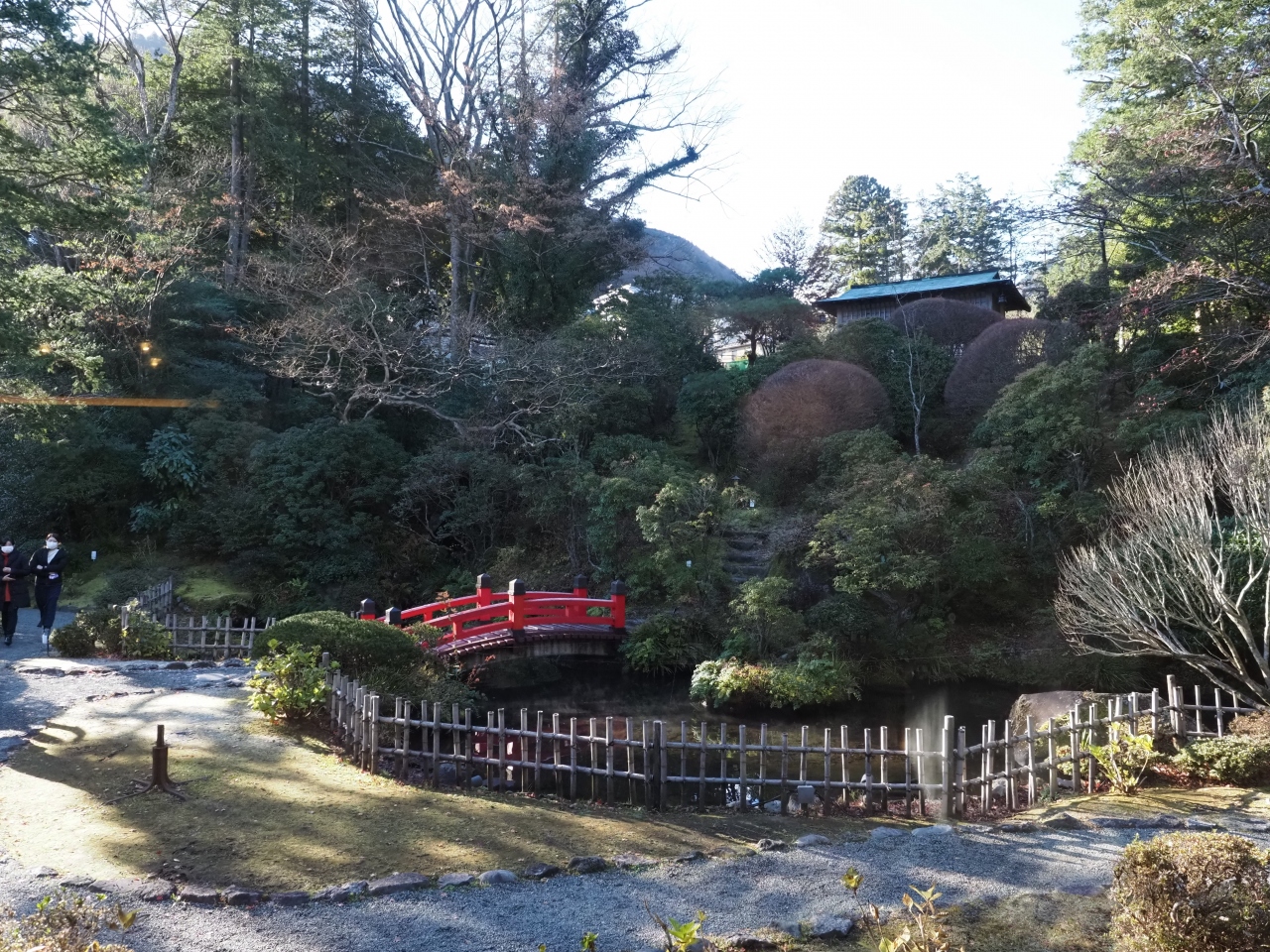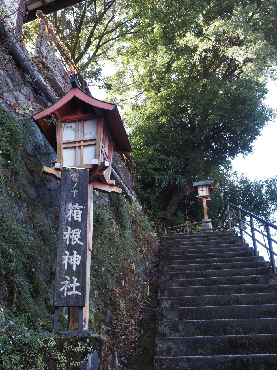 富士屋ホテル角から曲がって歩いて行くこともできますが、バス停「神社下」で降りれば、すぐです。