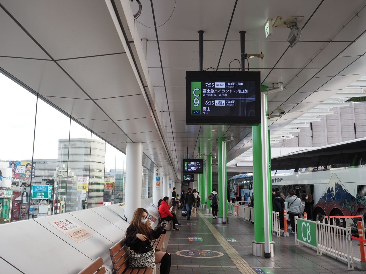 案内は天井辺りにありますので、乗り場はすぐにわかります。思ったほど広くはないので、端から端まで乗り場を探しても3分くらいしかかからないと思います。