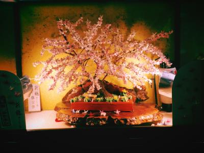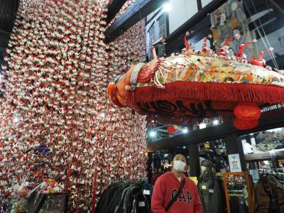 雑貨屋さんの方は、鶴のつるし飾りと、天井からつり下がっている大きな魚の布オブジェ以外は撮影禁止です。雑貨、民芸品などが所狭しと並んでいました。
