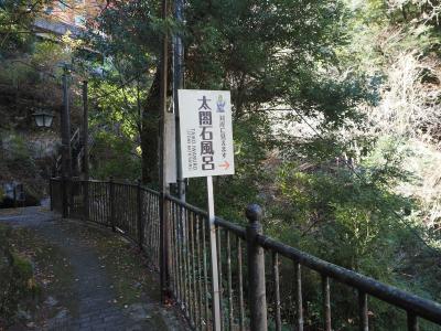石風呂通りの遊歩道から見るだけです。下に下りる階段は、現地の温泉に携わる人だけが利用できるようで、階段の上の柵には鍵がかかっています。