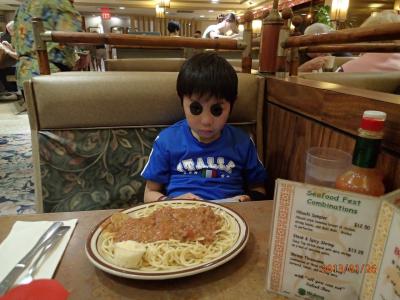 私はサイミンを。子供は2.5ドルのスパゲティを食べました。