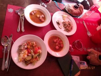 私はサーモンスープ、パン付きで10ユーロくらいでした。