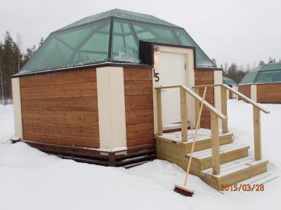 あいにく、曇りから雪だったのでガラス天井だったけれどオーロラは見られませんでした。