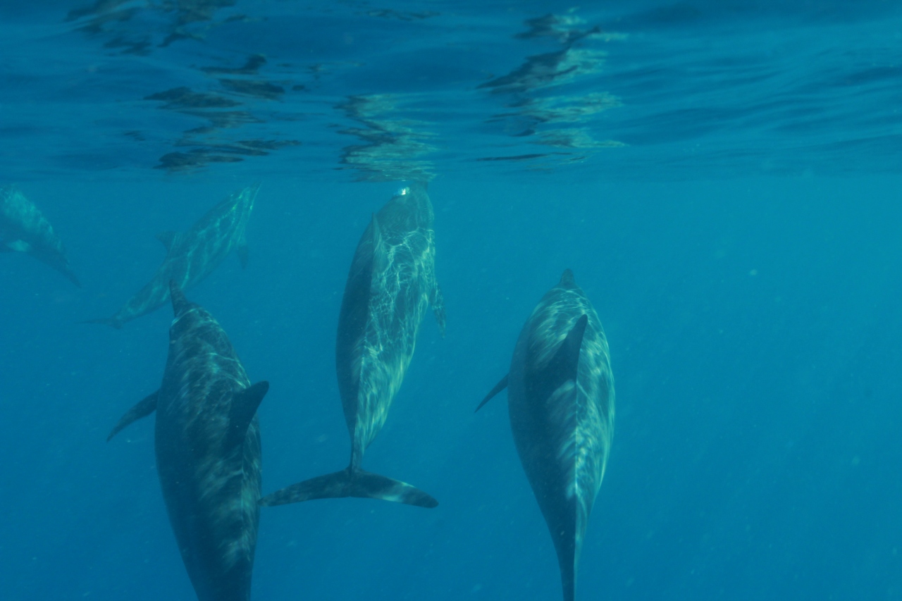 真夏という事もあって、海は春よりも多少透明度が低いように感じましたが、またイルカたちに会えました。