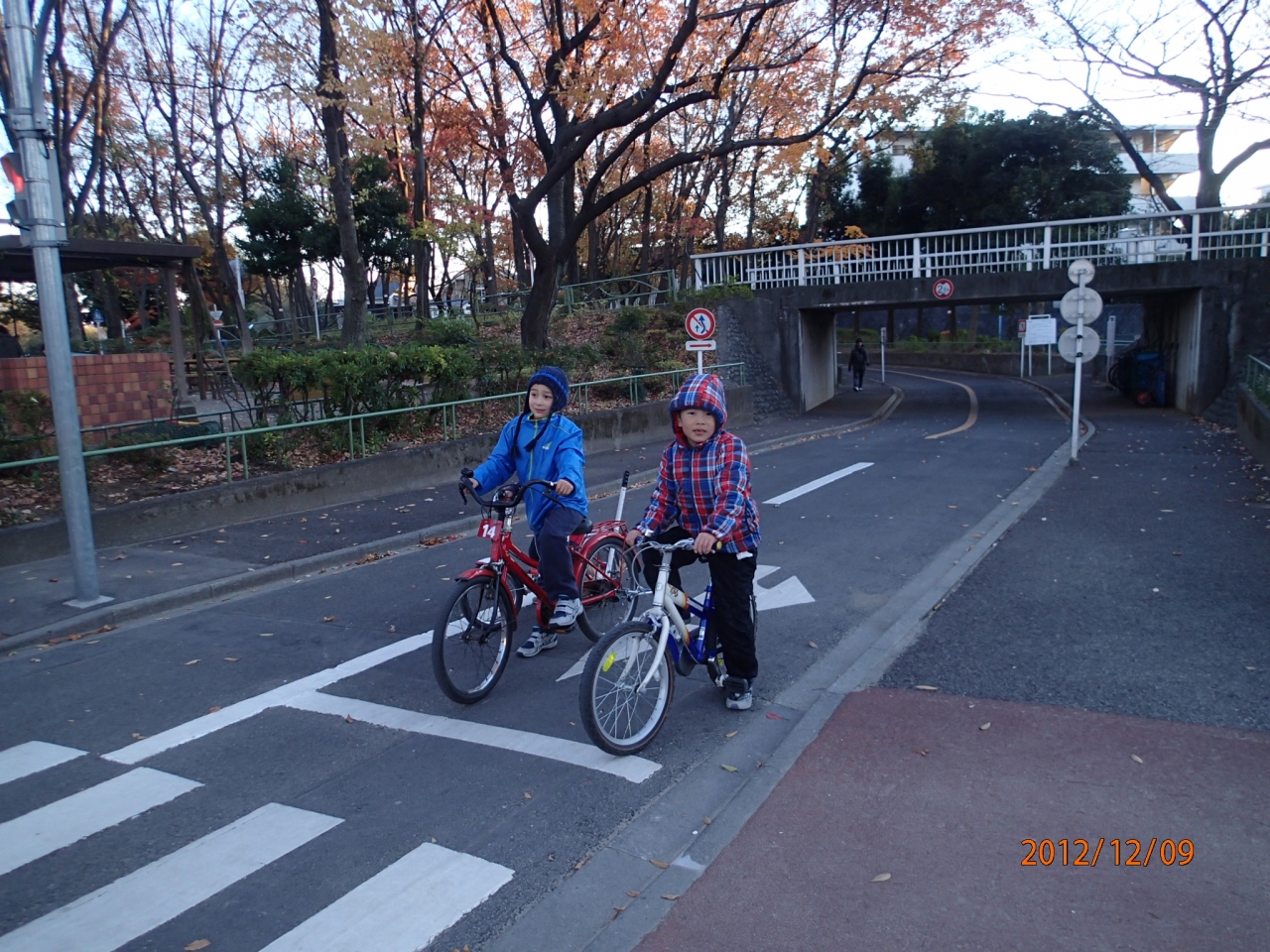 寒い中遊びに来ました。近所で自転車を乗り回せる場所がないので、ここに来たかったそうです。