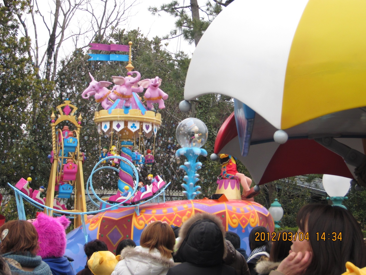 ジュビレーションは何度も見ているので場所取りまでした見ないですが、トゥーンタウンにいると、そこそこ遠い場所からでも上の方は見えます(下の方は樹木や、立ち見の人で見えません)。- 旅行時期