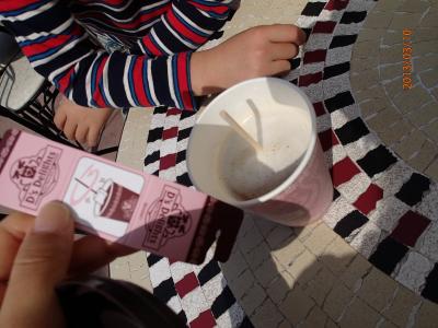 ここのテラス席もたくさんあって、よほどの混雑時でない限り座れますし、すごく遠いけれど、パレートも見れます。- 旅行時期
