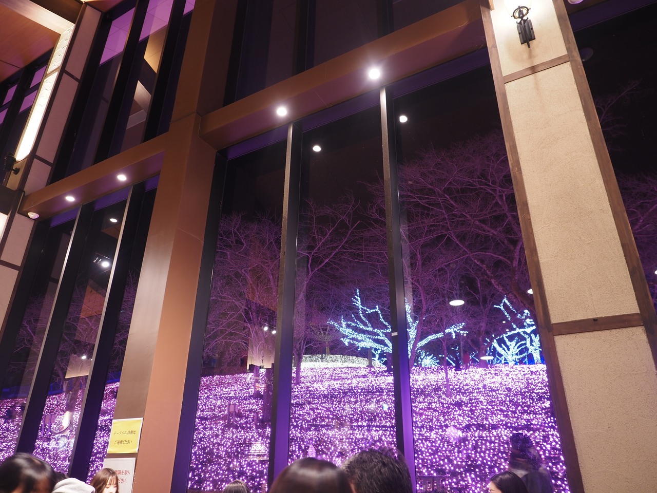さがみ湖イルミリオンを見て、こちらで夕食。窓が全面ガラスで景色がよいです。空いている時間帯なら、窓際の席がおすすめです。