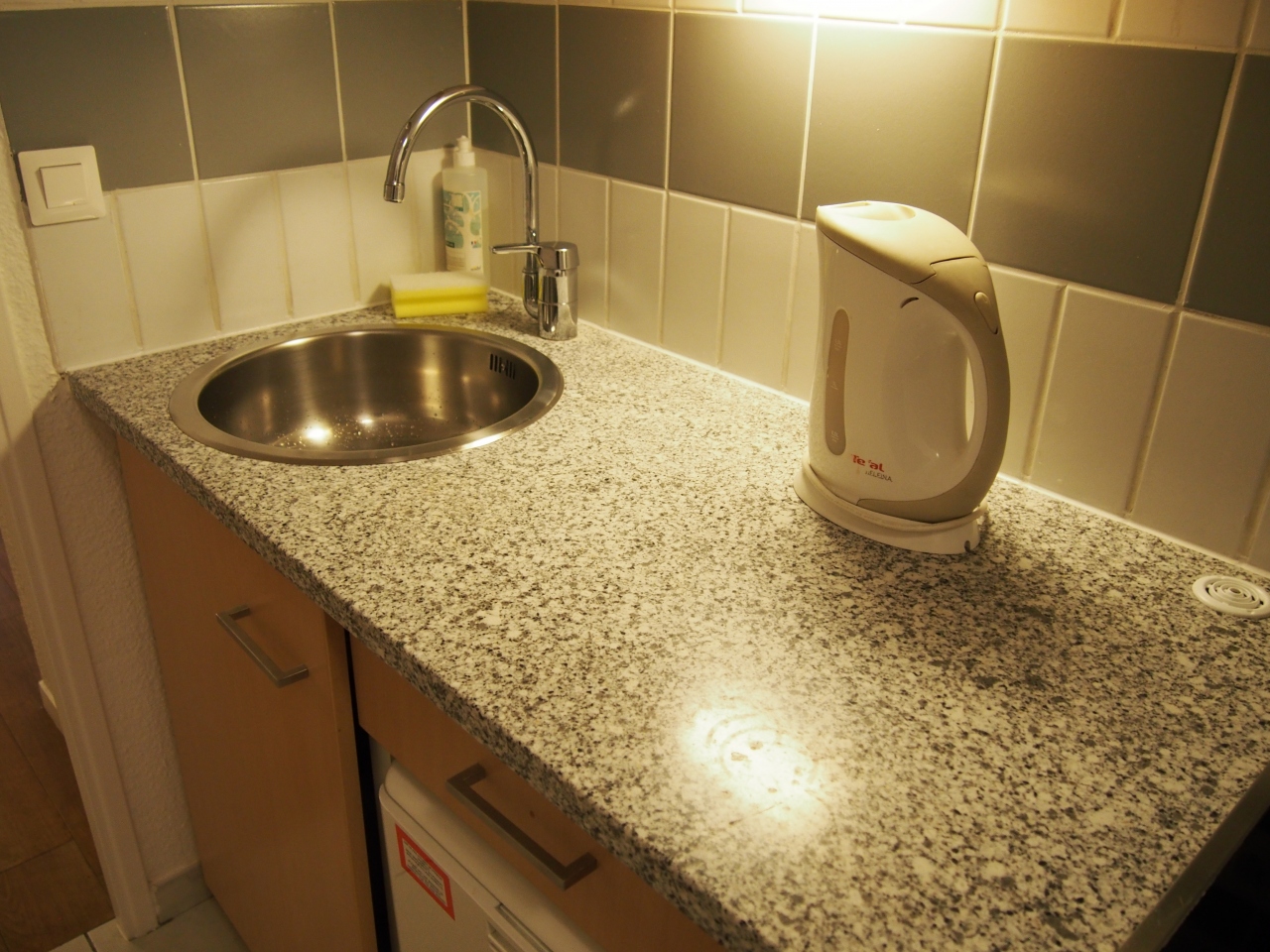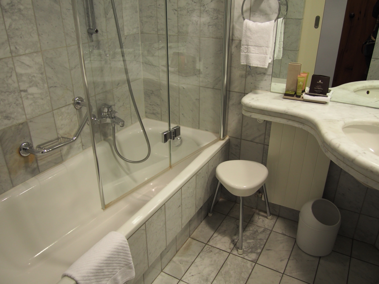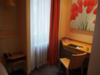 お部屋はシングルルームですが、こじんまりしてても改装したてなのか非常に綺麗でした。ミニバーは有料で、お湯などポットがないのが残念でしたね。ですがバスルームが浴槽付きでバンバンお湯もでるしアメニティも揃っててなかなか立派でした。