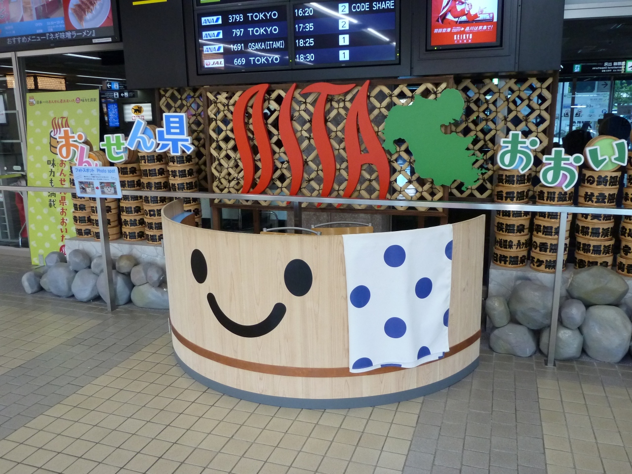 滑走路の眺めのよい郷土料理風レストランがあるのでオスプレイを観ながら昼食を食べようとすると窓側は満席というので仕方なくコンビニでコーヒーとおにぎりを購入(´・ω・`) 足湯もあります。