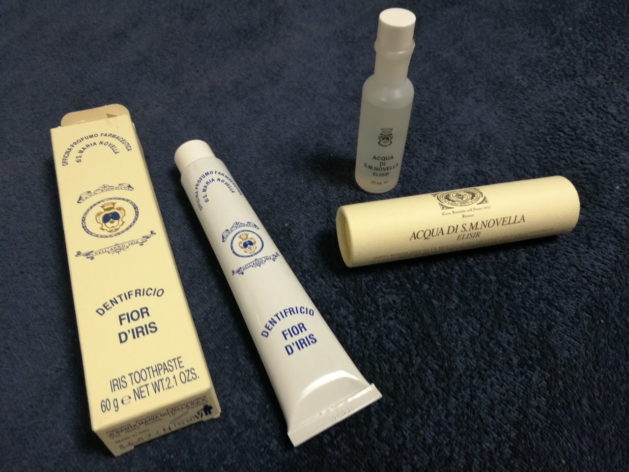 私は歯磨き粉とエリサーという水に少々混ぜるとさわやかな花の匂いがする水になる、というものを買うことにしました。店員さんは笑顔で非常に丁寧に説明してくれました。