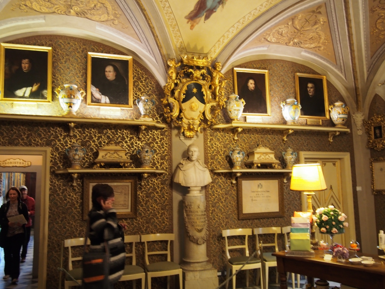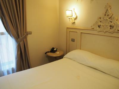 ホテル自体はとても歴史のある建物のようで、肖像画やイタリアの風景の絵画が大きな螺旋階段に飾っており、ロビーも含めてなかなか雰囲気がよかったです。