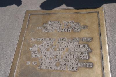 シャンゼリゼ通りを向いて凱旋門をみた辺りに「ここでルイ16世とマリー・アントワネットが処刑されました」っていうプレートがあります。