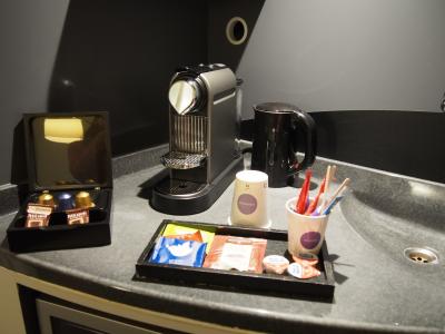 部屋は無料のハーブティーやインスタントコーヒーがありますが、冷蔵庫の中は有料でお高いです。