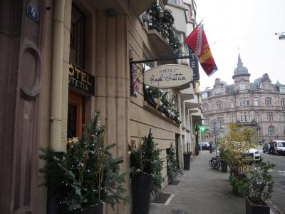 ホテルは明るいピンク色の建物でミュンヘン中央駅でてすぐ、目の前からトラムもバスも空港バスもでる、非常に便利な位置にあります。