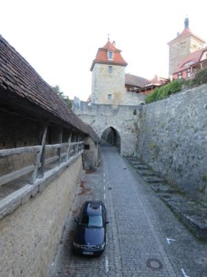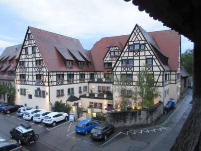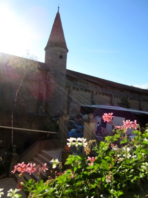 城壁内にあるホテルで、窓にお花のプランターがあって