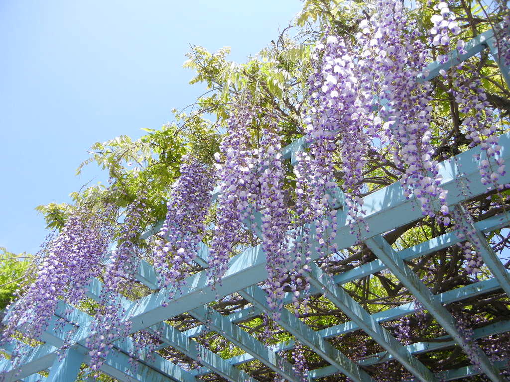 藤棚の藤の花は、開花し始めたころで見ごろは、5月中旬ごろになりそうです。- 旅行時期