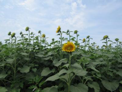 背丈以上に大きく育ったヒマワリがいっぱい植わって