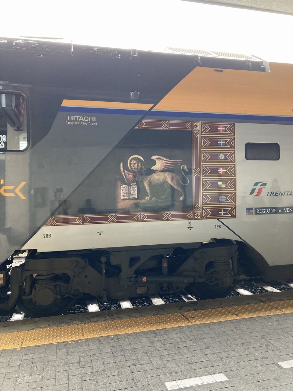 で、Webサイトで予約したフレッチャロッサは、サンマルコ(有翼のライオン)を掲げた、Hitachi Railの車両。落書きもなく、きれいで快適な車両でした。- 旅行時期