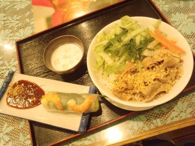 今回オーダーしたのは、『豚肉のせビーフン、生春巻き、チェー』のセット。このセットの生春巻きはベトナム風炒飯と変更可でした。