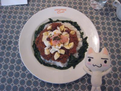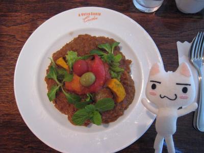 歌舞伎座近くにある洋食屋です。このお店では、フルーツ(バナナやリンゴ)、冷えたラタトゥーユとミント、野菜炒めとゆで卵&えび等が乗っかったカレー...等、少々変わったカレーを頂けます。