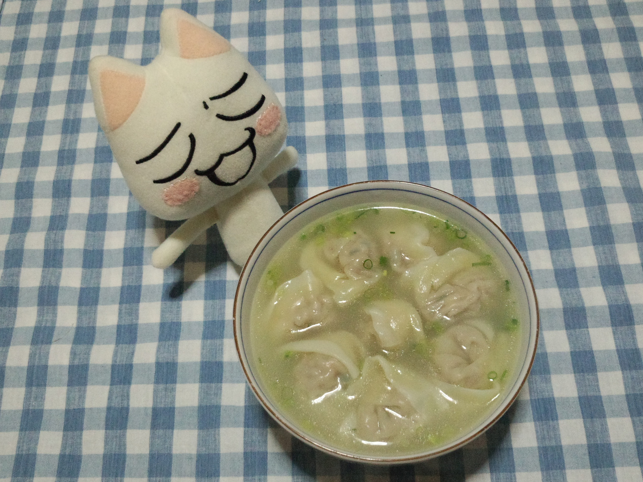 パックにワンタンとわけぎ、カップにスープが入っていていました。