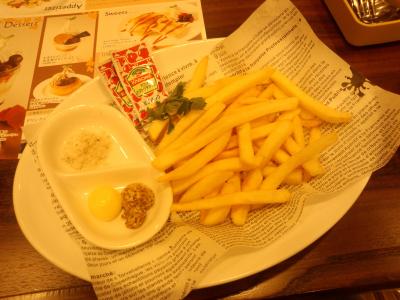 無性にフライドポテトが食べたくなりオーダー、ケチャップとマスタードと一緒にトリュフ入りのお塩が添えられていました。