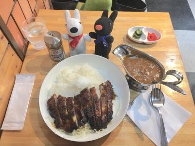 そして別添えのチキンカレーをライスにかけ...野菜が煮込まれたカレーは辛口で、中に入っているチキンは柔らかく、味わい深いカレーで、とても美味しかったです。
