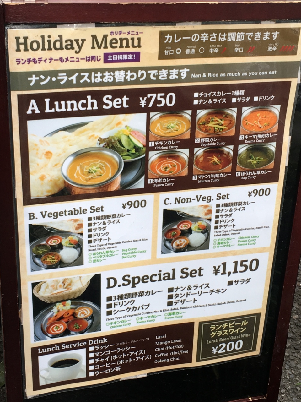 +¥100でナンをチーズクルチャに変更出来ます。- 旅行時期