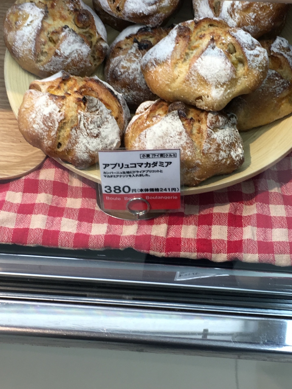 カンパーニュ生地の中にドライアプリコットとマカダミアナッツが入っていまして、全体的に味のバランスが取れていて、とても美味しかったです。