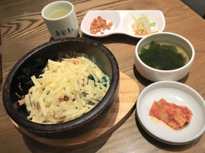 熱々に熱せられた石焼の中には、ご飯、キムチ、ゼンマイ、ほうれん草のナムル、ひき肉、そしてとろけるチーズが入っていまして、普通に美味しかったです。