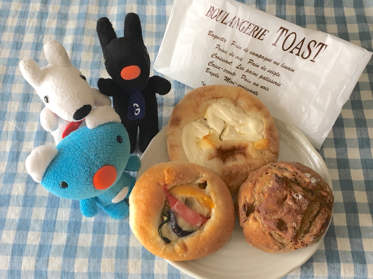 今回、塩パン(クリームチーズとゴーダチーズが乗ったのも)、くるみパン、グリーンカレーパンなどを購入。