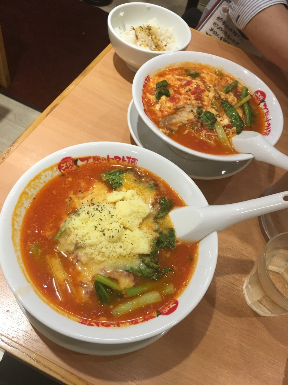 トマトベースのラーメンスープ、鶏肉、ほうれん草(?)、粉チーズが入っていまして、名称は極細でした。