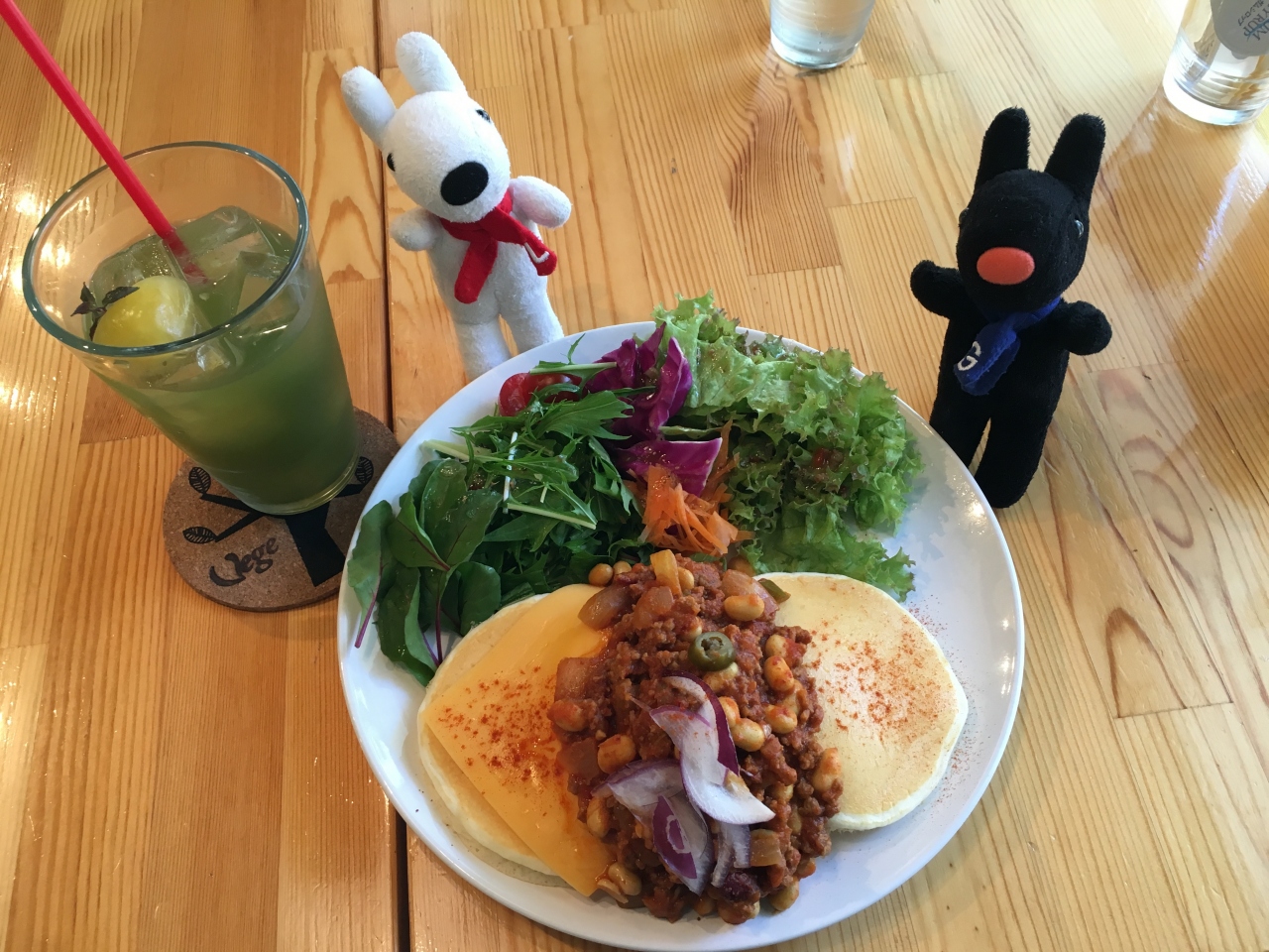 今回、『緑色のVegeドリンク』と『ホットチリビーンズのメキシカンパンケーキ』をオーダー。
