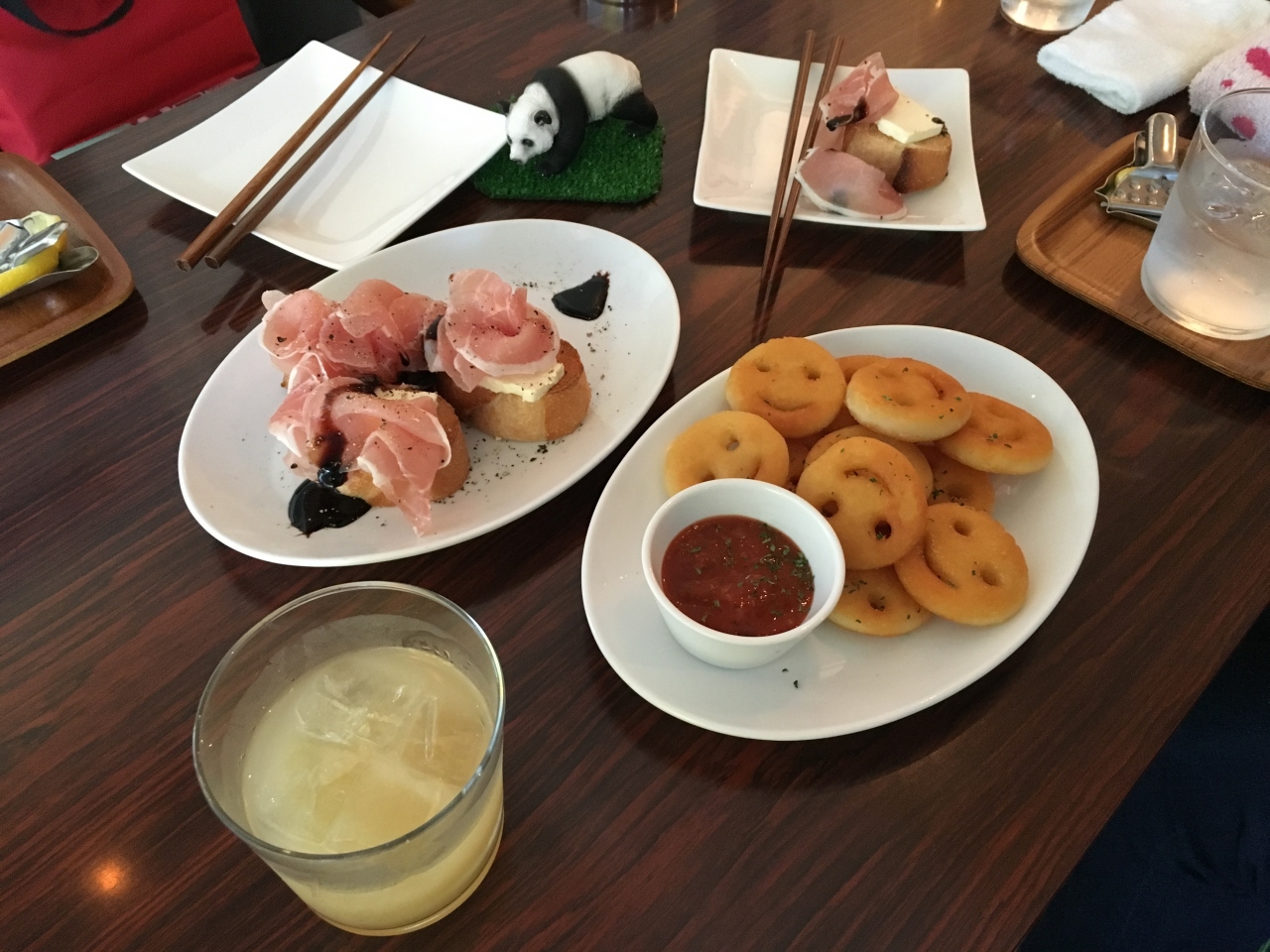 今回、生ハムのブルスケッタやポテト2525(ニコニコ、と読むそう)などをオーダー。
