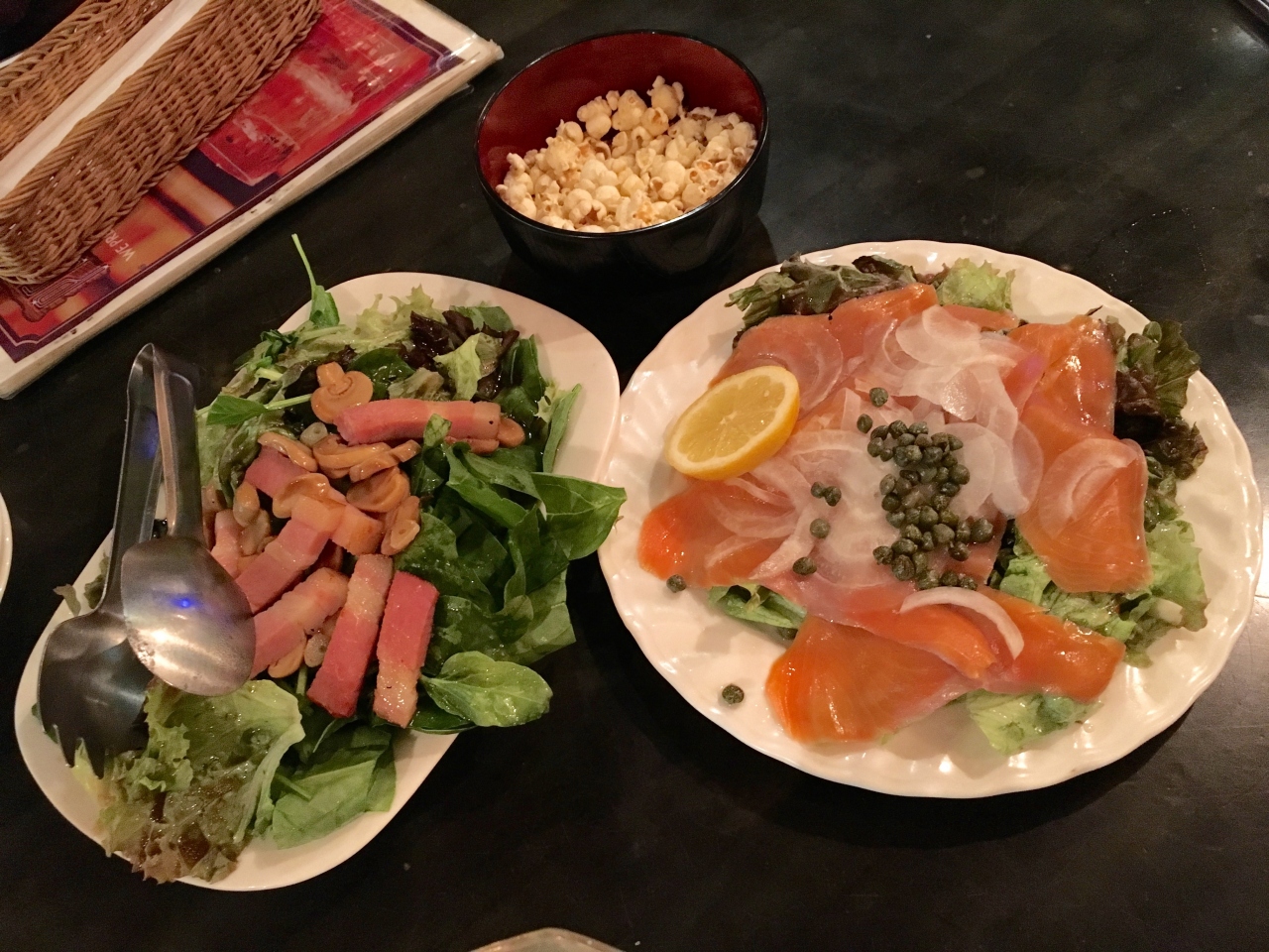 今回、アラカルトでオーダー。静岡県の牛の『みすじ』、牛タンネギ塩、サラダ、ナムル、コロッケ、ファアグラのパテをお酒と一緒に食しました。