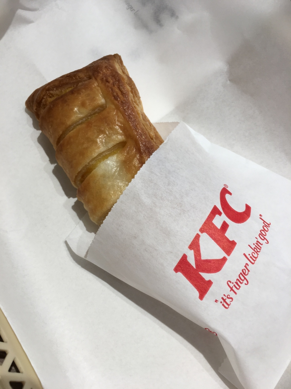 フライドチキン、レタス、チーズ、オニオン、カレーソースをバンズでサンドしたもので、お味は普通。想像以上でも以下でも無く、でした。- 旅行時期