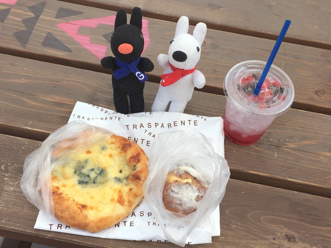 今回、ゴルゴンゾーラとハチミツのパンと、クリームチーズとクランベリーのパンとラズベリーソーダを購入。
