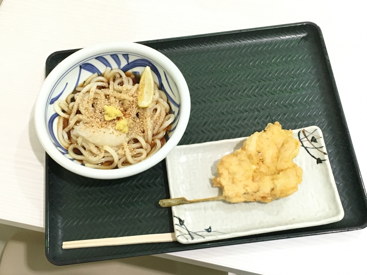 今回、私は『ぶっかけ』と『びっくり鳥天』をオーダー、うどんは残念ながらあまり腰の無いものでしたが、普通のお味でした。鳥天も普通です。