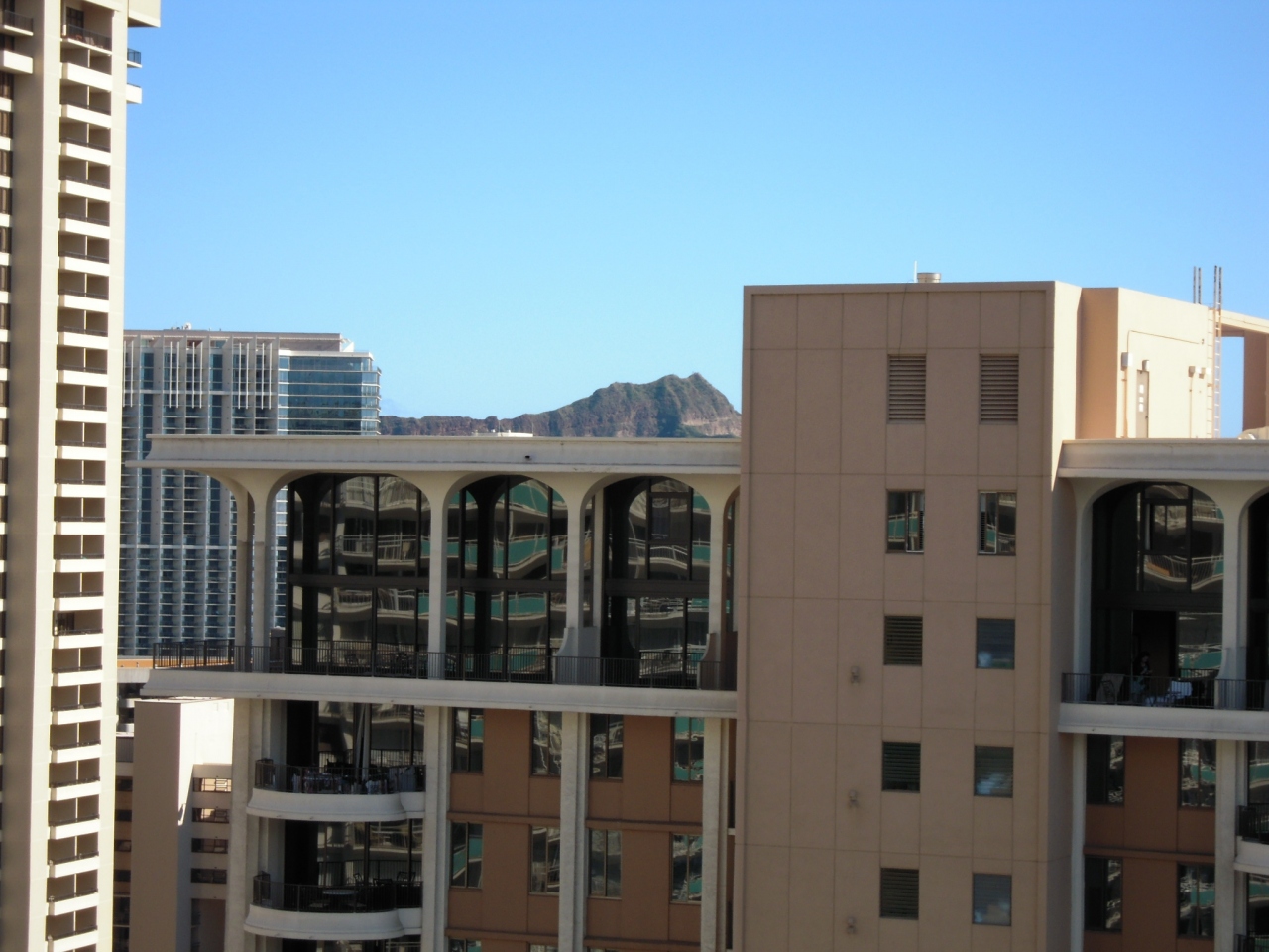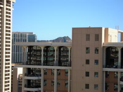 正面にヒルトンのラグーンタワーがありますが距離があるのでそれほど気になりません。ラグーンタワー越しにダイヤモンドヘッドも見れましたし、金曜にはラナイから花火もばっちり見えました。