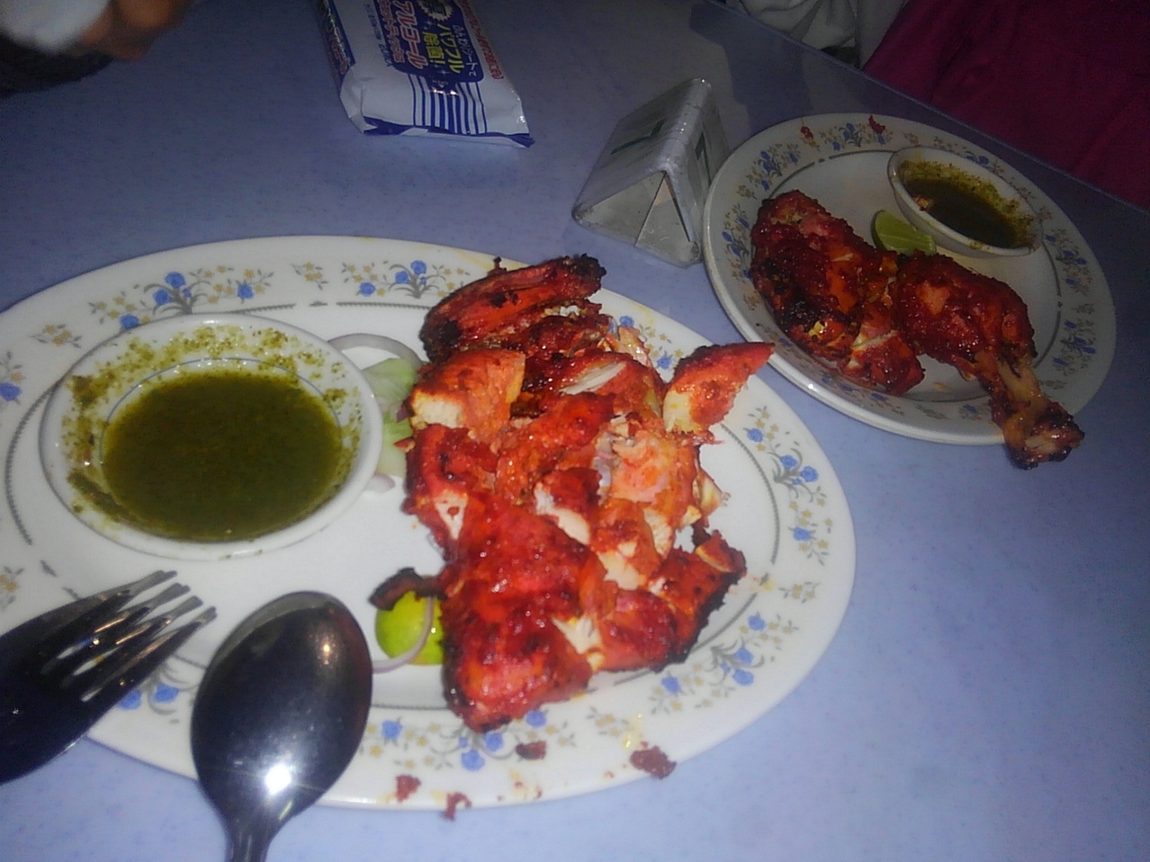 席につくとすぐメニューを持ってきてくれ、タンドリーチキン二人前、チーズナン、オリジナルをひとつずつオーダー。