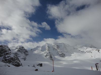 サンモリッツから約40分の乗車で、ベルニナ・ディアボレッツア(Bernia Diavolezza)に到着。ここからロープウエイで一気に2984mまで登ります。ここのレストランはなんとフリーWIFiがつながります。景色を撮影したらLINE等で、日本に写真を送ることができました。