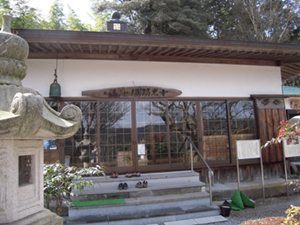 仁王像が鎮座するうっそうとした急な山道を登っていくと、やっと本堂にたどり着きます。この寺は文殊山(614メートル)の山裾にあります。ここの御住職は岩戸寺と成仏寺の鬼会の鬼様です。最近は鬼様を引退し、息子さんが鬼様になっているようです。また、ここは3大文殊のひとつに数えられ、奥の院の隣の洞窟からは知恵の水が湧き出ています。本尊は文殊菩薩。本殿にはいると、「どうぞご自由にお飲みください」とお茶とお菓子がおいてありました。ありがたくいただき、副住職がいらしたので、知恵の水について伺うと、「今、洞窟がちょっと危険な状態なので、一般の人は入れません。知恵の水はここに汲んでありますのでこちらをどうぞ」という返答。ありがたく知恵の水をいただきました。これで両子寺の不老不死の水、そして文殊仙寺の知恵の水をいただいたことになります。御利益がありそうです。