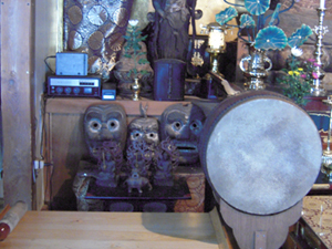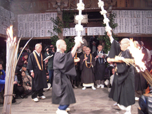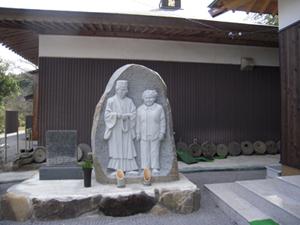 六郷満山(ろくごうまんざん)、天台宗のお寺。ここのご住職は面白い法話をするということで有名な方。早速、お話を伺うことにしました。そしてここには国東最後の琵琶法師、高木清玄氏の銅像があります。高木師の像は本堂の横にありました。奥様とのツーショット。観音堂には師の写真や琵琶などが展示されています。しばらくすると地元の方たちが集まってきました。聞いてみると今日は鬼会の行事があるとのこと。日をおいて、多くのお寺で行われているとのことでした。今回の目的の天念寺の修正鬼会(しゅじょうおにえ)と、ここともう一箇所、今回は成仏寺(岩戸寺と1年おきに行われる)の鬼会は大々的に行われていますが、その他の寺院は住職による読経が行われます。国東に住む人々の信仰心は昔から脈々と続いているようです。