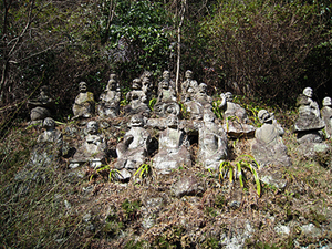 泉福寺は曹洞宗、九州大本山のお寺で、国東半島の中で最も規模の大きい寺院です。無着禅師の開山で、創建当事は常任の僧侶が500人以上いたとされています。しかし、現在は無住。週に何回か住職がやってくるそうです。ここには国指定、重要文化財の開山堂があり、扉を開くときに独特の音がします。残念ながら住職が不在にため中を見せてもらうことができませんでした。泉福寺には多くの石造品があります。禅宗のお寺に、密教の象徴である、五輪塔も数多く見られます。これも国東だけのものでしょうか?