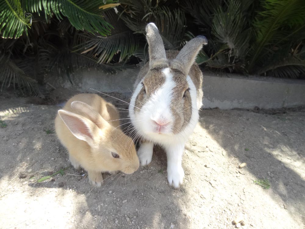呉線、忠海から船で12分の所にあります。島自体が国民休暇村、大久野島の敷地になっています。行った日は暑かったので、ウサギはあまり出ていなかったのですが、植え木の根元などを探すと、見つかります。港や休暇村の正面は観光客も多く、餌をあげる人が多いため、ウサギは飽食気味です。また、この島は旧日本軍の毒ガスを作る施設があったので、今でも遺跡として残っています。