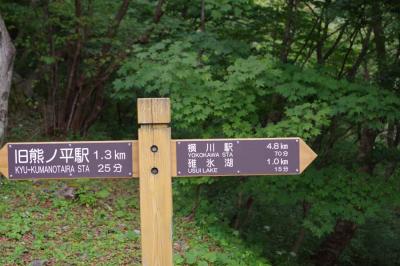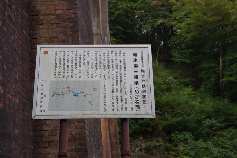 明治26年、200万個のレンガを積み上げて造られた、めがね橋です。旧碓井峠、横川から5キロくらいのところにあります。線路は撤去されていますが、近くに道ができていて、上ることができます。両側にはトンネルがあり、旧熊ノ平駅まで1.3キロ、横川まで4.8キロ。横川から、旧熊ノ平までは、本数は少ないですがバスも通っているので、ここから、横川までハイキングするのもいいかもしれません。でも、クマ出没注意の看板が出ていました。